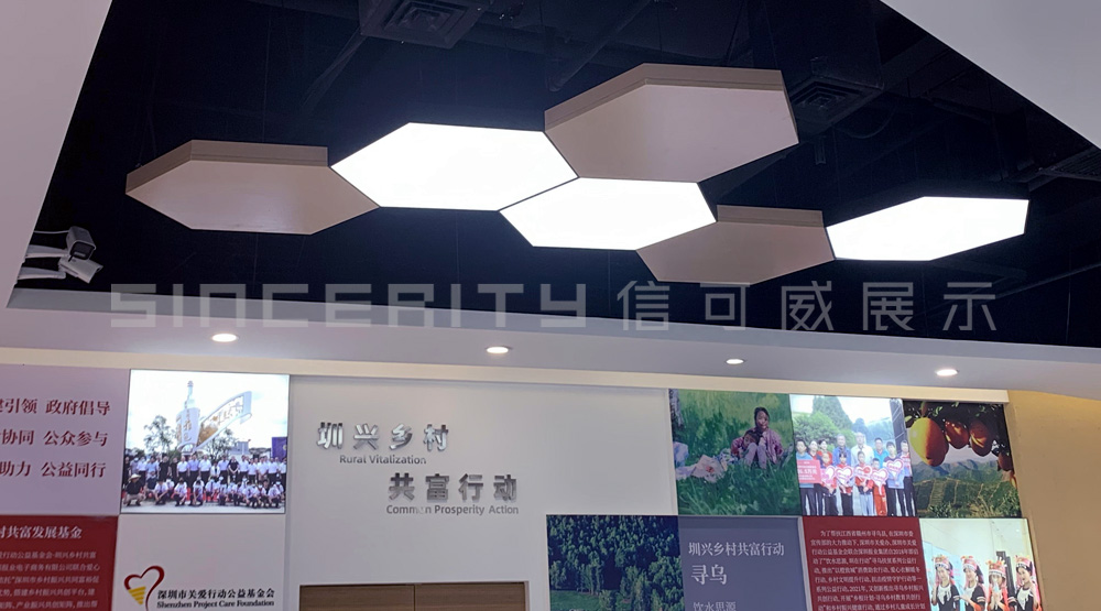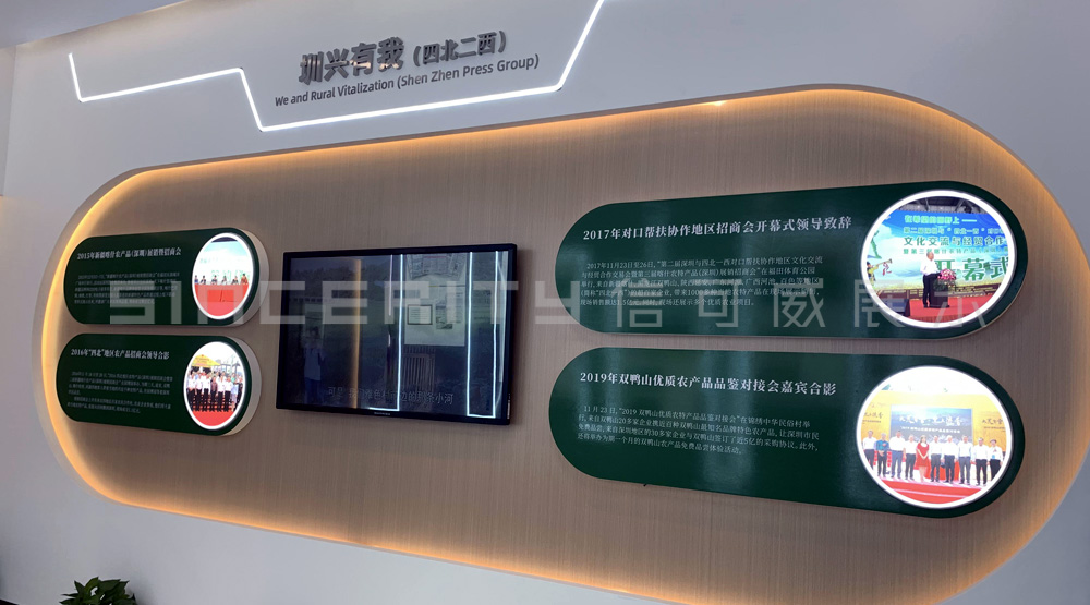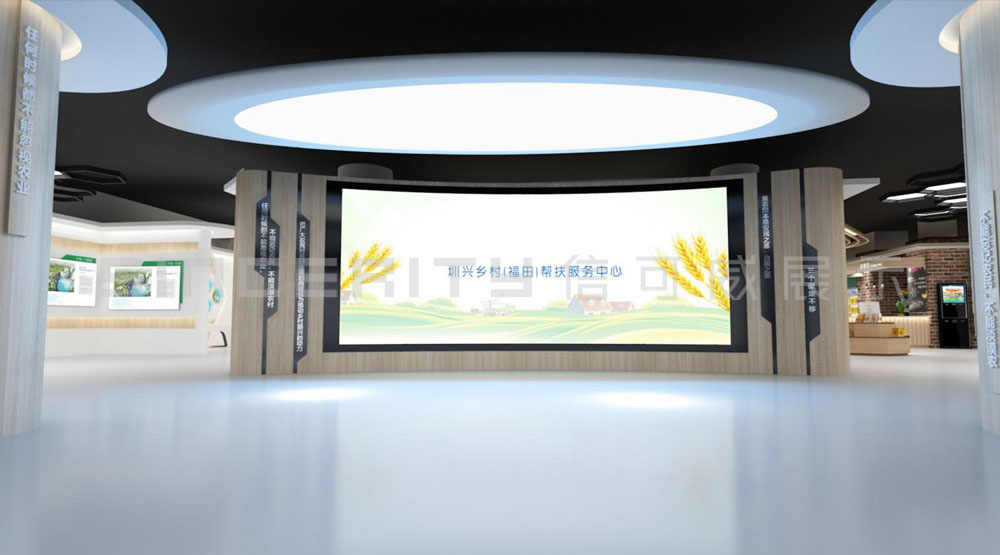 深圳(福田)振興鄉(xiāng)村消費(fèi)扶貧展示廳面積1300平米,包括“大國(guó)戰(zhàn)略”、“圳興有我”、“圳興有禮”、“圳興發(fā)布”、“圳興滋味”五大功能區(qū),整個(gè)展示館本著“節(jié)儉、樸實(shí)、不奢華”原則,通過(guò)圖文展版、實(shí)物展陳、模型展示、場(chǎng)景還原等多種形式,綜合運(yùn)用聲光電技術(shù),搭建“鄉(xiāng)村振興+創(chuàng)新性協(xié)作服務(wù)平臺(tái)。