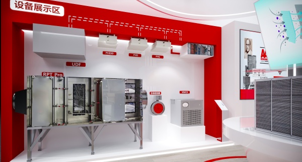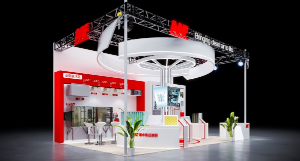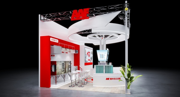 愛美克CIPM藥機(jī)展臺設(shè)計(jì)整體風(fēng)格簡潔而富有科技感。主要采用白色和紅色的配色方案,營造出一種專業(yè)且充滿活力的氛圍。