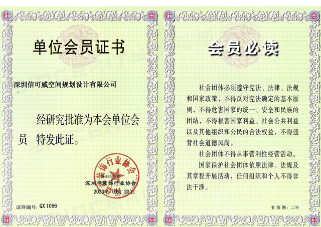 2022年7月,我司榮膺“深圳市裝飾行業(yè)協(xié)會(huì)理事單位”,并獲得相應(yīng)的會(huì)員證書及牌匾。