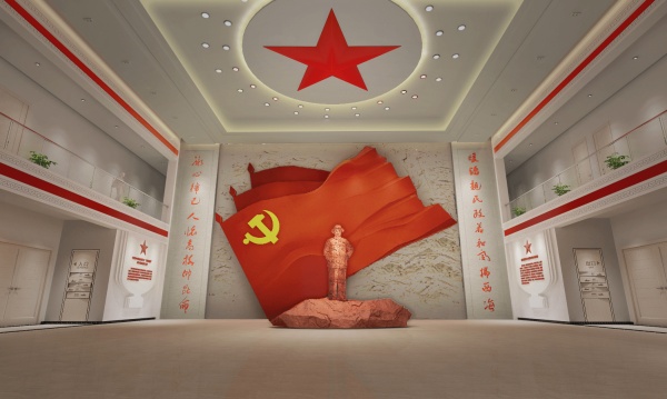 通過對時代楷模主題的凝練,展示尕布龍作為一名共產(chǎn)黨員的光輝形象。純潔的白色和共產(chǎn)黨人的本色奠定了序廳的基調(diào)。尕布龍同志的雕像靜靜地佇立在黨旗前凝望著草原。極致的空間設計,詮釋出他崇高理想信念,一生求索,為人民服務!