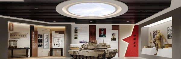 空間設(shè)計(jì)巧妙融合現(xiàn)代手法與中式元素:簡(jiǎn)潔線條、規(guī)整布局搭配質(zhì)感材料,盡顯當(dāng)代審美;紅色主調(diào)、傳統(tǒng)書(shū)畫(huà)與中式展陳方式相得益彰,讓傳統(tǒng)文化底蘊(yùn)自然流露,營(yíng)造出莊重而不失溫度的參觀氛圍。