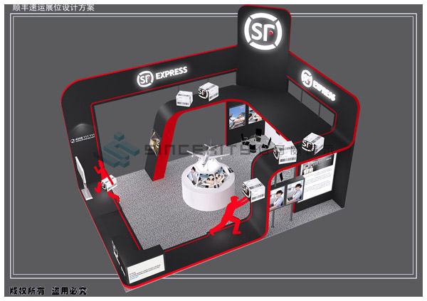搭建注意:展館層高適中,適合中小型特裝,互動(dòng)體驗(yàn)區(qū)設(shè)計(jì)需預(yù)留充足人流通道